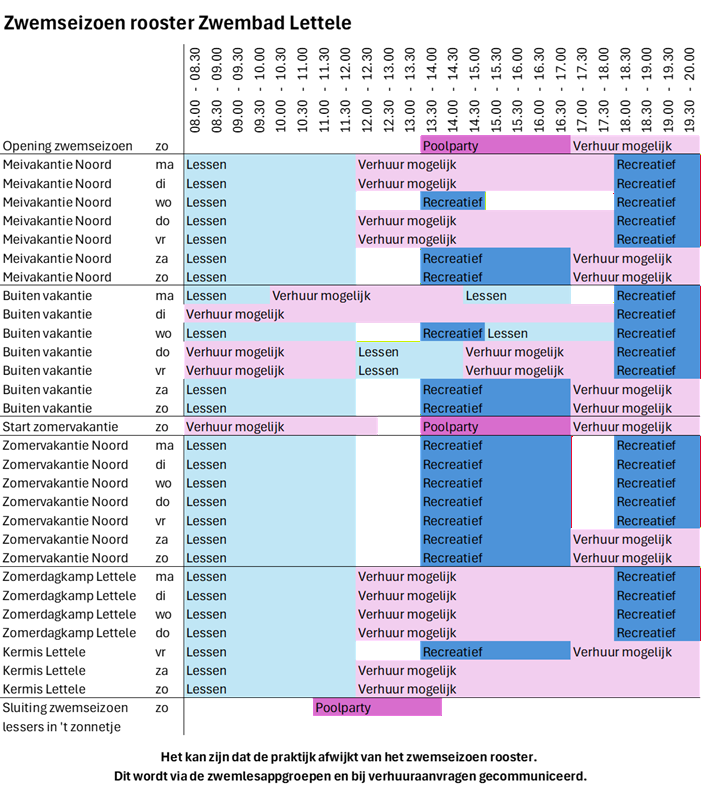 In 2026 is het zwembad geopend van zondag 26 april t/m zondag 6 september.